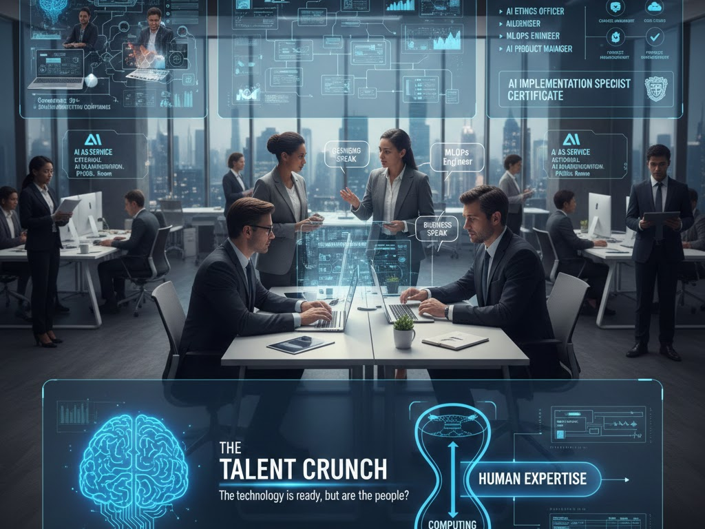 The Talent Crunch The technology is ready, but are the people? The biggest bottleneck in AI adoption today is not computing power; it is human expertise. Finding the right talent to execute your vision is the hardest part of the puzzle. This article focuses on the human ecosystem of AI: from hiring an ai implementation manager to engaging external ai implementation companies.